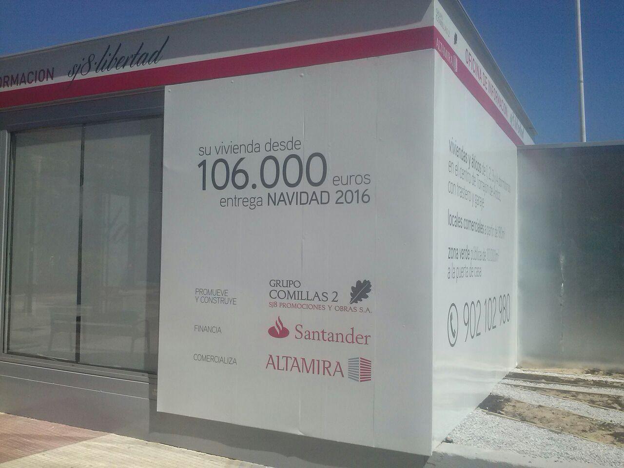Fijación de vinilos sobre valla y caseta de obra: